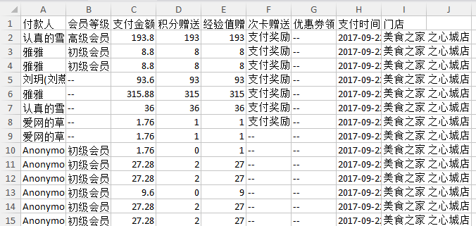 1,门店1在2017-10-01至2017-10-08,每10元消费后可以额外赠送1个积分