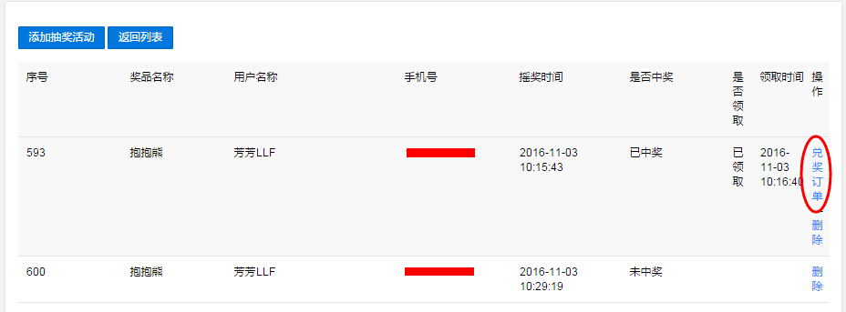 6.店铺也可以从活动记录里面查看有谁中奖以及给中奖粉丝发货